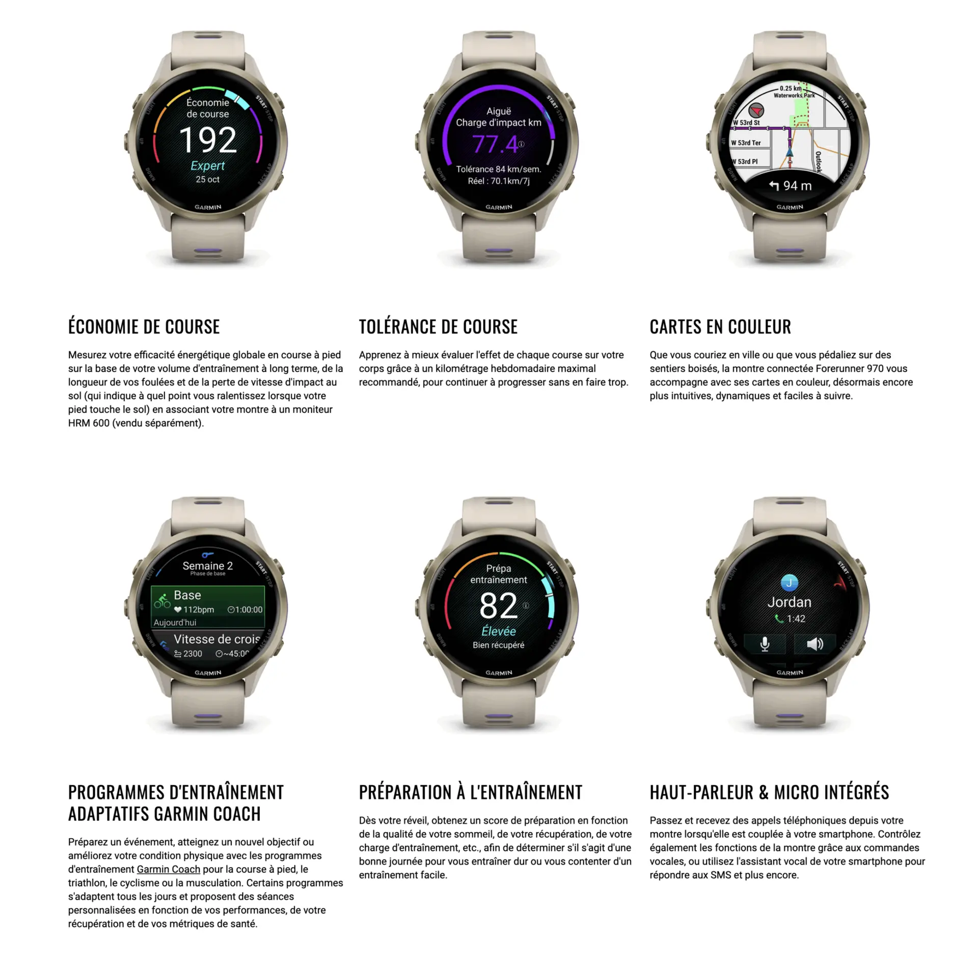 - Verre saphir et titane : résistance + look premium. On est plus proche d’une Fenix qu’une simple Forerunner.