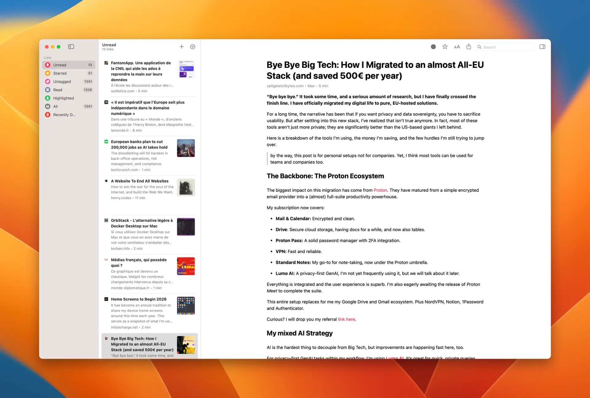 Du coup je n’ai jamais eu aussi peu d’articles à lire que depuis que j’utilise cette application, puisque si je n’ai pas forcément le temps de tout lire, je résume les articles via l’IA.